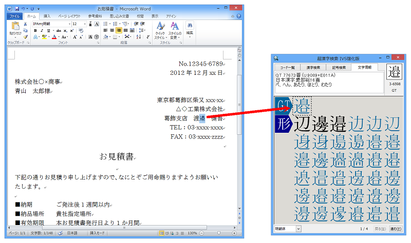 - Multi-kanji and variant characters pasted in Windows documents are coded by the functions of Unicode IVS/IVD. These characters can be used mutually with no character corruption if the environment is changed, because they are not external characters. It is hoped that this software will improve the circulation and compatibility of the data including multi-kanji and variant characters.