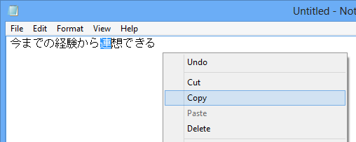 † The way of copying a character to the clipboard depends on the apps. For example, click the right mouse button, and then select [Copy].
