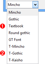 Mincho, Gothic, Textbook, Round gothic, GT Font
